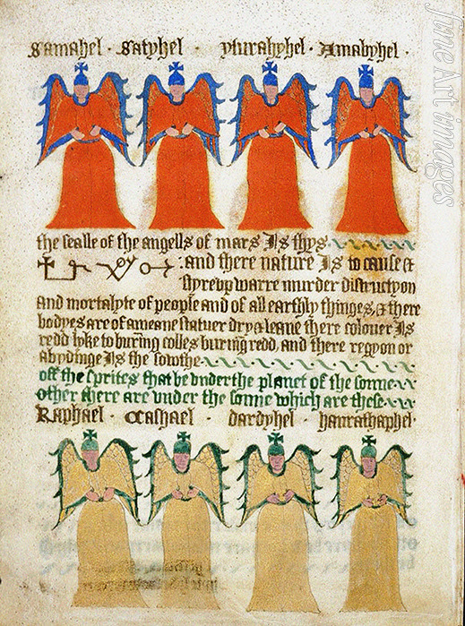 Die roten Engel des Mars und die goldenen Engel der Sonne. ?Aus The Sworn Book of Honorius (BL Royal 17 A)