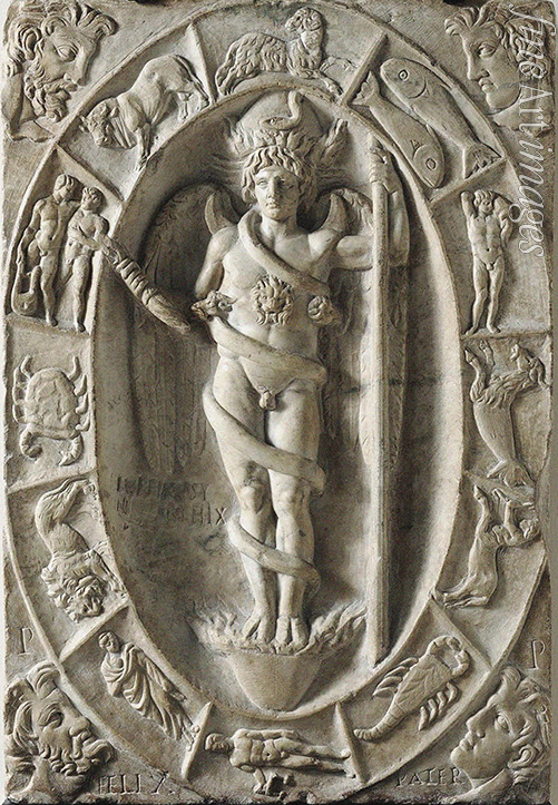 Medizin, Geschichte der Medizin, Eros, Astrologie, Handschrift, Okkultismus, Buchmalerei, Chronos, Tierkreis, Tierkreiszeichen, Sternzeichen, Zodiak, Sternbild, Manuskript, Alchemie, Alchymie, Alchimie, Alchemist, Alchemisten, Opus Magnum, Magnum opus, Wissenschaftsgeschichte, Bilderhandschrift, Kabbalismus, Miniatur, Phanes, Orphiker, Welt-Ei, Aion, Protogonos, Protogenos