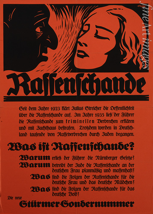 Rassenschande. Plakat für eine Sonderausgabe des Stürmers