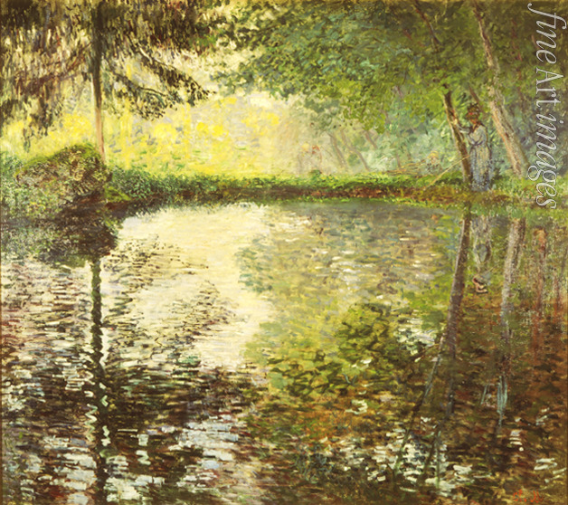 Sommer, Frankreich, Natur, Jahreszeiten, Poesie, Sonnenlicht, Bäume, Licht, Farbigkeit, Tageszeiten, Lichtwirkung, Garten, Wasser, Impression, Teich in Montgeron, Angler, Impressionismus, Impressionisten