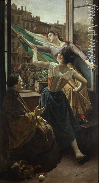 Italien, Mailand, Italienische Unabhängigkeitskriege, Risorgimento, Dritter Italienischer Unabhängigkeitskrieg, Fünf-Tage-Aufstand von Mailand, Cinque giornate di Milano, Flagge Italiens, Tricolore, Revolutionen von 1848
