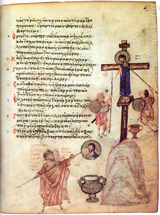 Byzantinischer Meister - Der Chludow-Psalter. Patriarch Johannes VII. Grammatikos löscht ein Christus-Bild mit einem Schwamm aus
