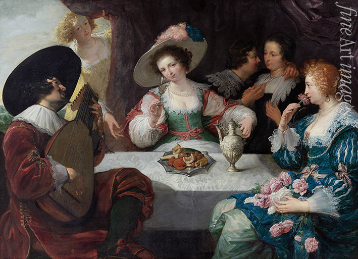 Allegorie der fünf Sinne: Elegante Gesellschaft an einem Tisch sitzend