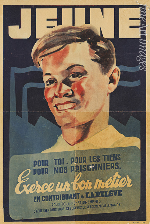 Junger Mann, übe einen guten Beruf aus, indem du zu La Relève beiträgst. Propagandaplakat des Vichy-Regimes