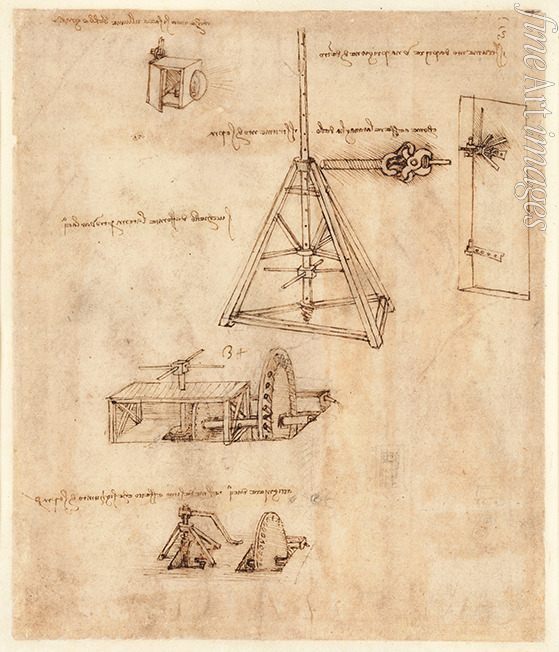Leonardo da Vinci - Codex Atlanticus, folio 34 recto: mechanische Geräte