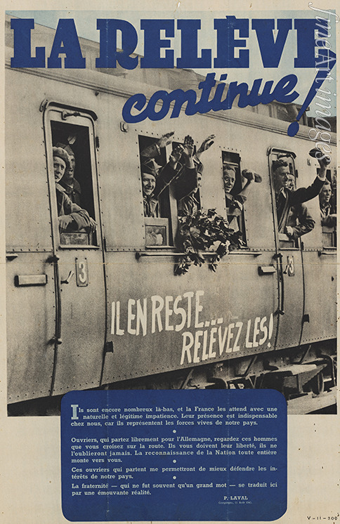 Plakat der Kampagne der Vichy-Regierung, um junge Franzosen zu ermutigen, in Deutschland zu arbeiten