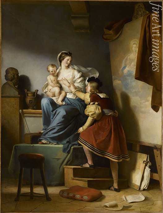 Raffael passt die Pose seines Modells für sein Gemälde der Jungfrau und des Kindes an