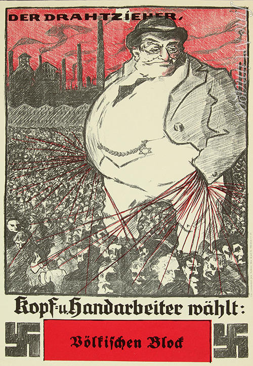 Deutschland, Deutsches Reich, Weimarer Republik, Drittes Reich, Nationalsozialismus, Wahl, Adolf Hitler, Hitler, Faschismus, Nazi, Nazis, Judenfeindlichkeit, Judenhass, Judenfeindschaft, Judenverfolgung, Antisemitismus, Nationalsozialistische Deutsche Arbeiterpartei, NSDAP, Reichstagswahl, Wahlplakat, Völkisch-Sozialer Block, Völkisch-Sozialen Block