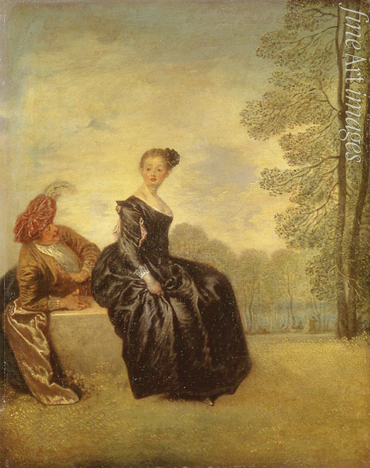 Bäume, Dame, Park, Belustigung, Rokoko, Unterhaltung, Kavalier, Galant, Amüsant, Liebesbeziehung, Flirt, Launische Frau, Schmollende, Laune, Galan, Fête galante, Galante Gesellschaft