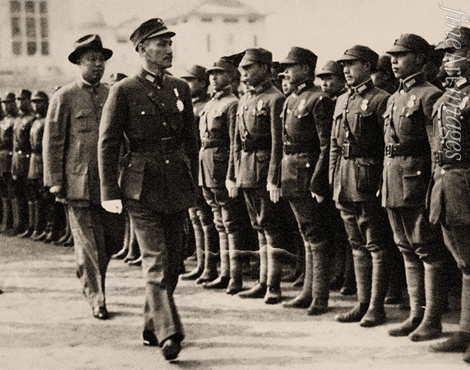 Chiang Kai-shek (1887-1975) inspiziert Kadetten der Whampoa-Militärakademie