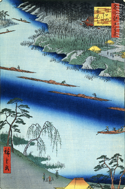 Der Zenko Tempel und die Fähre bei Kawaguchi (Einhundert Ansichten von Edo)