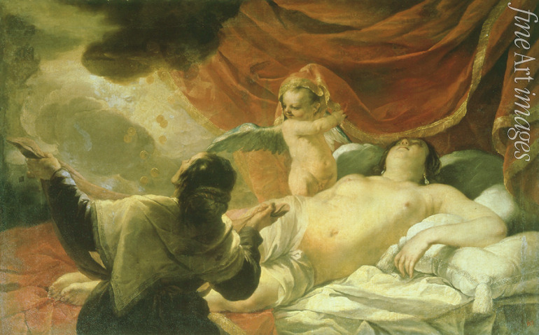 Nackt, Nacktheit, Dame, Nackte Frau, Körper, Schönheit, Interieur, Barock, Engel, Griechische Mythologie, Palast, Palais, Danaë, Geliebte des Zeus, Goldregen, Amme, Gewölbe, Palasthof, Bronzene Turm, Antike Götter, Im Bett, Akt
