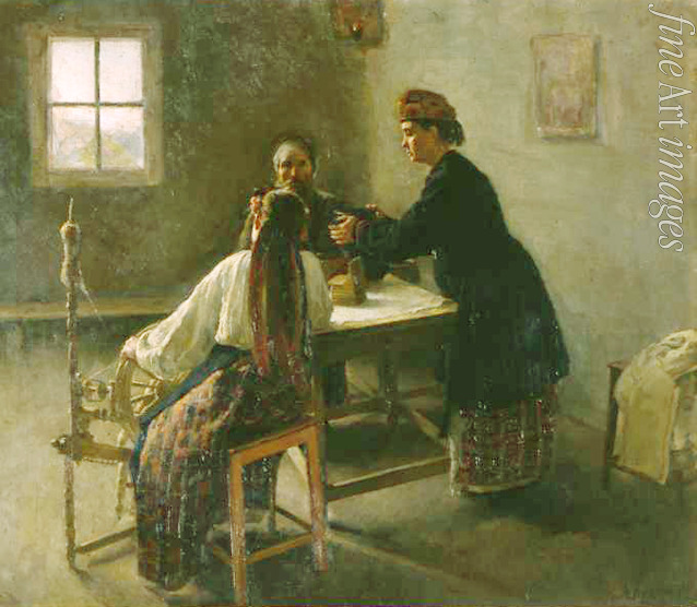 Armut, Russland, Arme Familie, Mahlzeit, Alltag, Familienszene, Genreszene, Spinnerin, Spinnrad, Spinnen