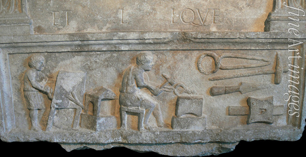 Grabstele mit Darstellung einer Schmiede