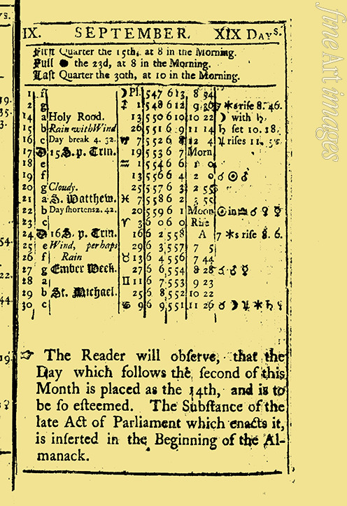 September - 19 Tage, aus The Virginia almanack, for the year of our Lord God 1752