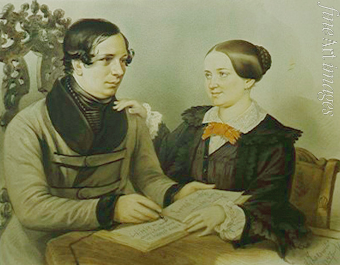 Porträt des Schriftstellers Nestor Kukolnik (1809-1868) mit Gattin