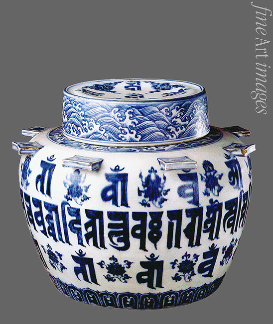 Der blau-weiße Xuande-Topf mit Sanskrit-Inschriften (buddhistisches Ritualgefäß)