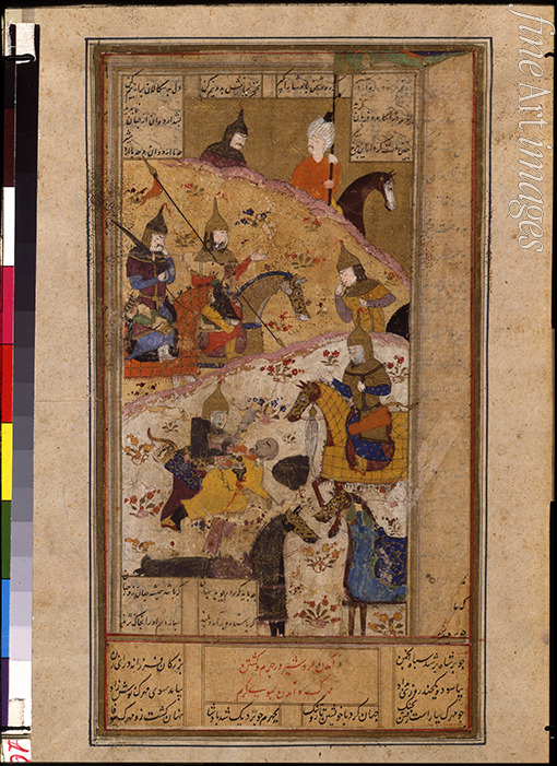 Ardaschir I. tötet den Großkönig der Parther Artabanos V. (Buchminiatur)