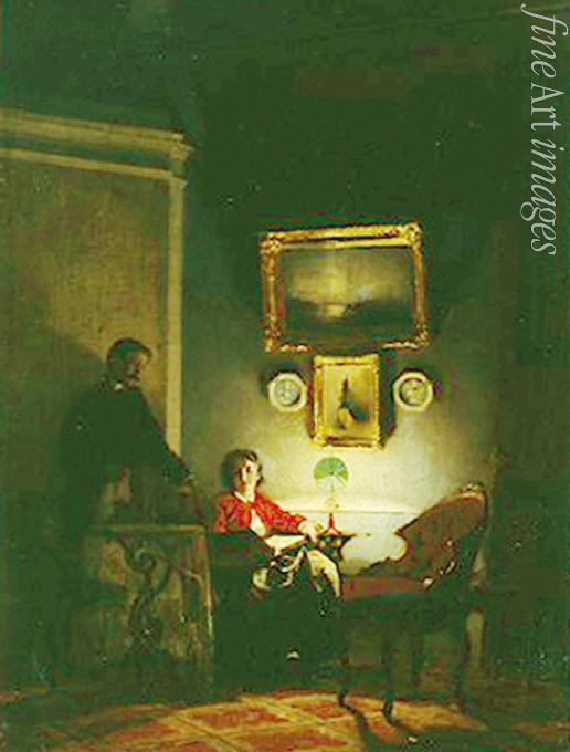 Poesie, Tageszeiten, Melancholie, Am Tisch, Frau, Zimmer, Einsamkeit, Abend, Russland, Interieur, Buch, Lesen, Lesende Frau, Beim Lesen, Lektüre