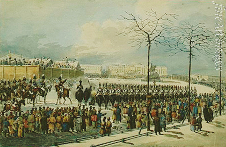 Das Aufstand der Dezembristen auf dem Senatsplatz am 14. Dezember 1825