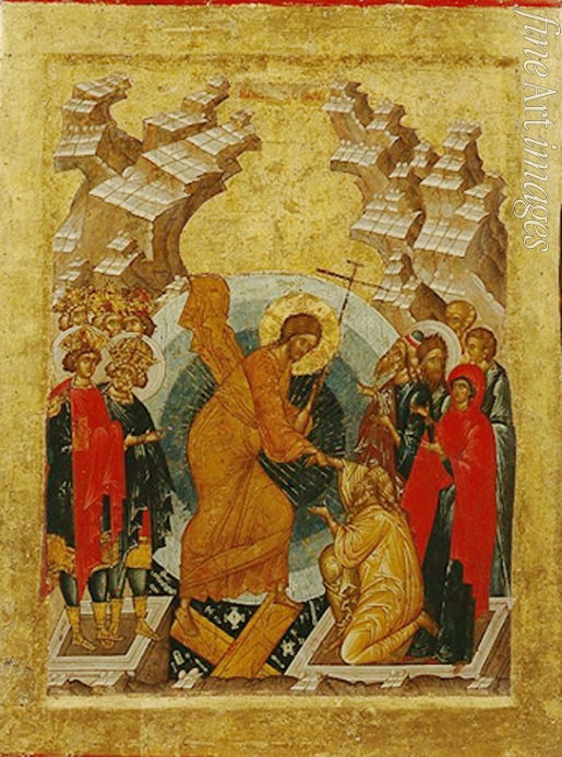 Tod, Ikone, Ikonenmalerei, Bibel, Neues Testament, Christus, Jesus, Gott, Hölle, Auferstehung, Orthodoxe Kirche, Russische Kirche, Himmelfahrt Christi, Christi Himmelfahrt, Auferstehung Christi, Höllenfahrt Christi, Höllenfahrt, Anastasis, Heiden, Geistern, Hinabsteigen Jesu, Erlösung, Unterwelt, Reich des Todes
