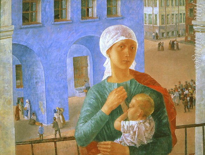 Stadtbild, Symbol, Russland, 1918 in Petrograd, Mutterschaft, Mutterliebe, Mutter und Kind, Madonna, Bürgerkrieg, Verteidigung, Demonstration, Proletariat, Revolution, Russische Revolution, Platz, Mutter, Balkon, Unruhe, Petrograd, Oktoberrevolution, Russischer Bürgerkrieg, 1917, Marienbildnis