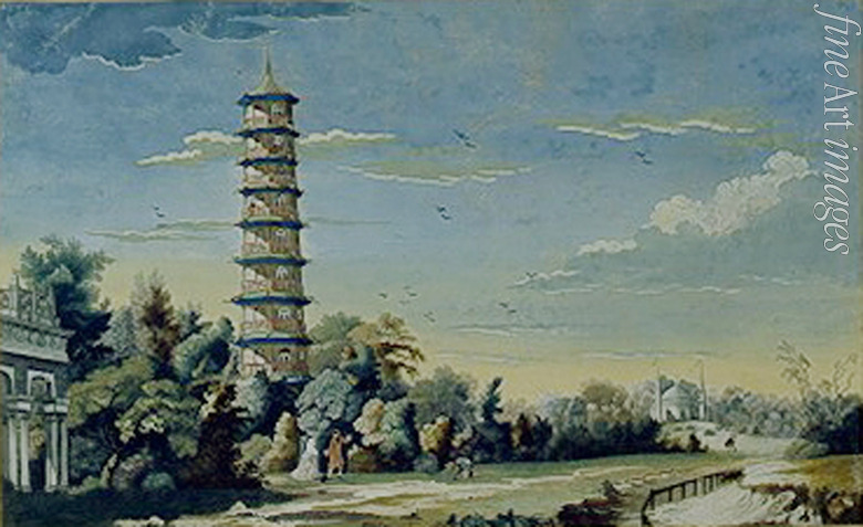 Blick auf die Pagode und die Alhambra in der Royal Botanic Gardens in Kew