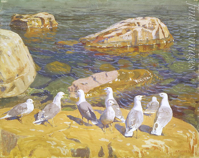 Nature, Poetry, Sun light, Light, Colourfulness, Sea, Sea landscape, Shore, Seashore, Bay, Water, Impression, Seagulls, Rocks, Bird, Russia, Birds, Sea Birds, Animals representation, Seagull