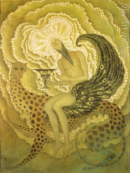 Decorative, Poetry, Melancholy, Symbol, Symbolism, Russia, Fantasy, Fantasy world, Oriental, Night, Dream, Good and evil, Superstition, Waking, Magic, Magician, Panther, Fairy tale, Kalmakov, Kalmakoff