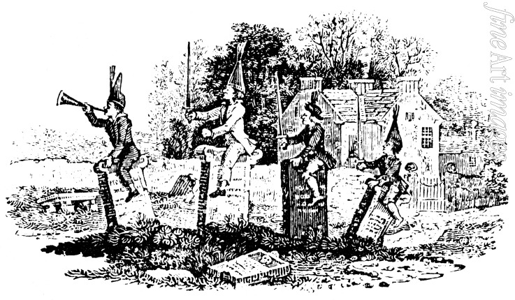 Title:Children playing in the cemetery. Vignette from the Book History of British Birds by Thomas Bewick