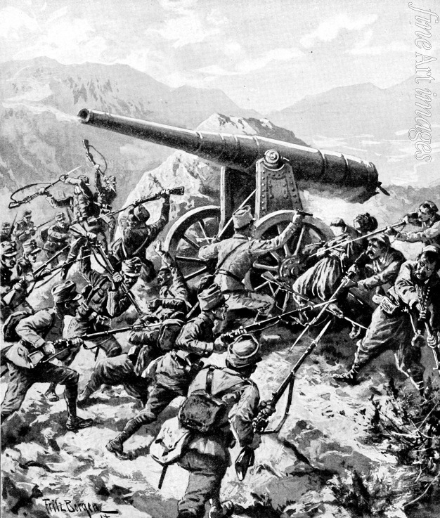 Title:The conquest of a Montenegrin field gun Long Tom near Bileca (Illustration from Allgemeiner Kriegszeitung)