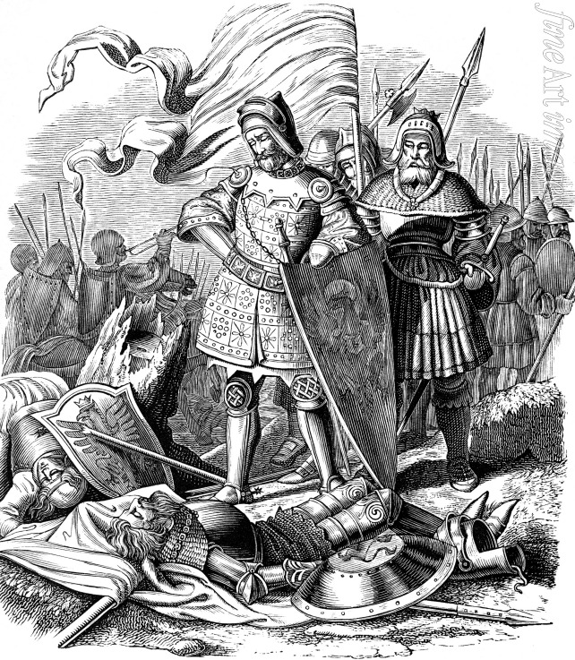 Rudolph I on batllefield after the victory over Ottokar (Illustration from the Geschichte des deutschen Volkes by E. Duller)
