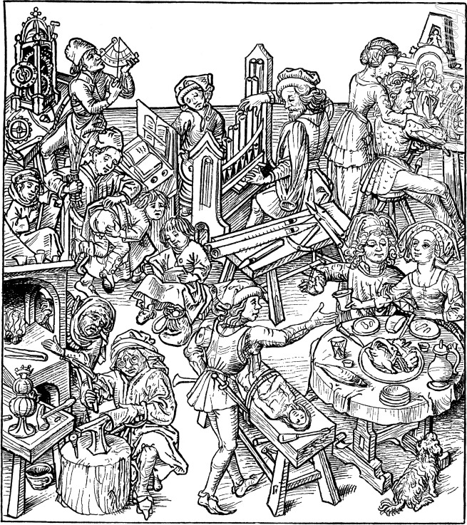 Germany, Jobs, Job, Handicraft, Middle Ages, History of Germany, Monochrome picture, black-and-white, blackwhite, German History, Medieval, Astrology, Cosmology, Planets, Master of the Amsterdam Cabinet, Handwork, Handcraft, Artisan, Craftsman, Carver