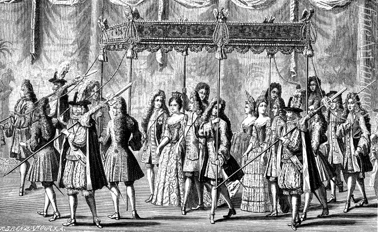 Title:Queen consort Sophia Charlotte at the crowning ceremony on Januar 18, 1701 (From the Prussian Crowning History 1712)