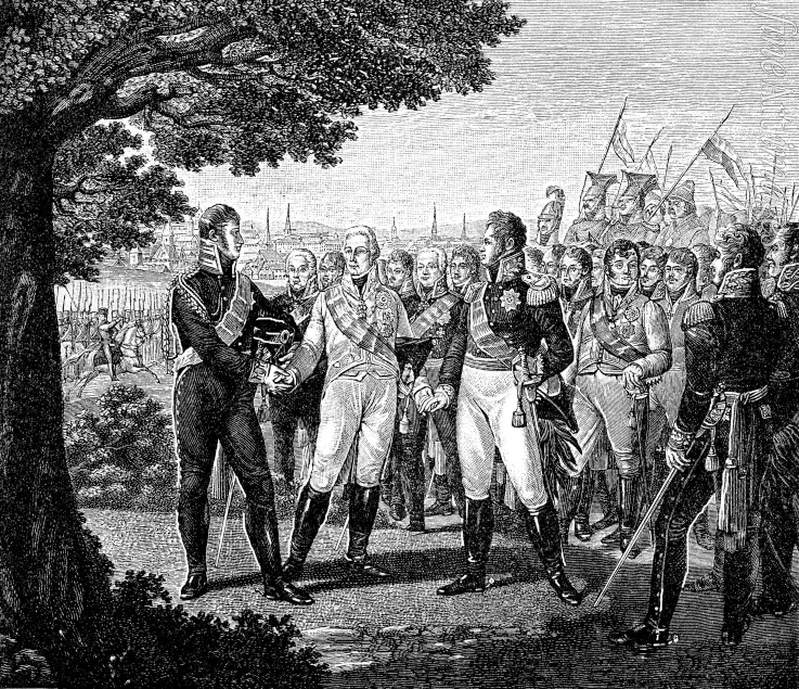 Keywords: Russia, Freedom, Germany, Napoleon I, Prussia, Napoleon, Napoleonic wars, Hohenzollern, Emperor Alexander I of Russia, Alexander I., Emperor Alexander I, Third Coalition, Coalition, Alliance, History of Germany, Monochrome picture, black-and-white, blackwhite, German History, Austia