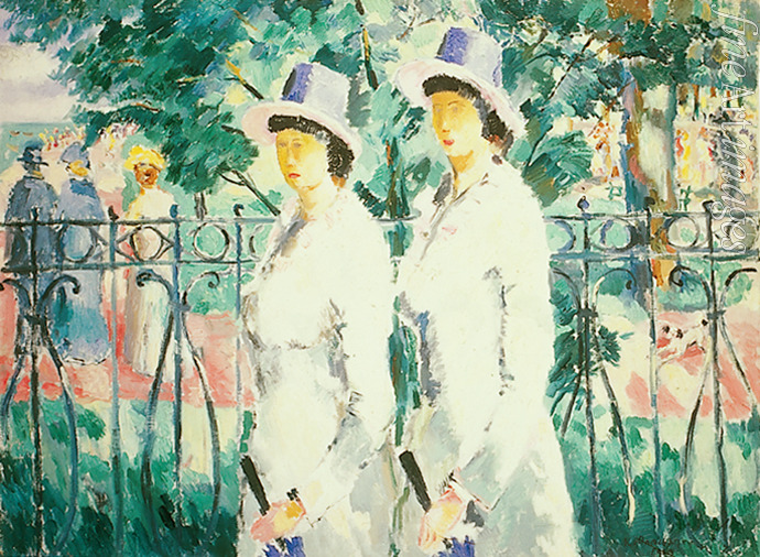 Summer, Poetry, Trees, Hat, Young Ladies, Fashion, Flamboyant, Sisters, Twin Sisters, Boulevard, Walk, Russian Avant-garde, Umbrella, Gown, Dress, Frock, Clothes, Wear, Attire, Clothing, Cubofuturism, Cubo-Futurism