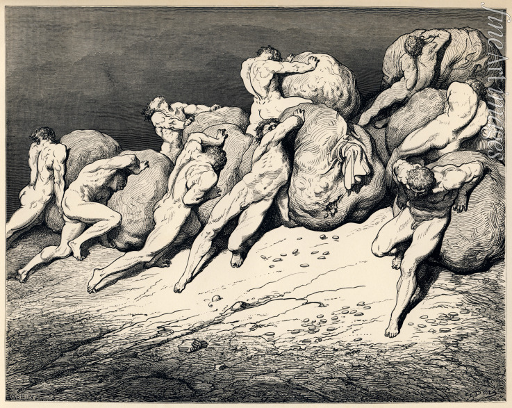The hoarders and wasters. Illustration to the Divine Comedy by Dante Alighieri