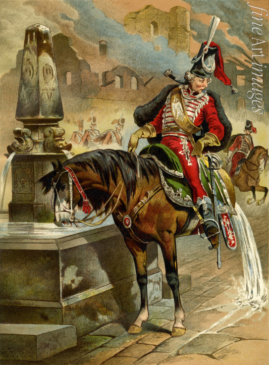 Illustration to the book The Surprising Adventures of Baron Münchhausen by Rudolph Erich Raspe