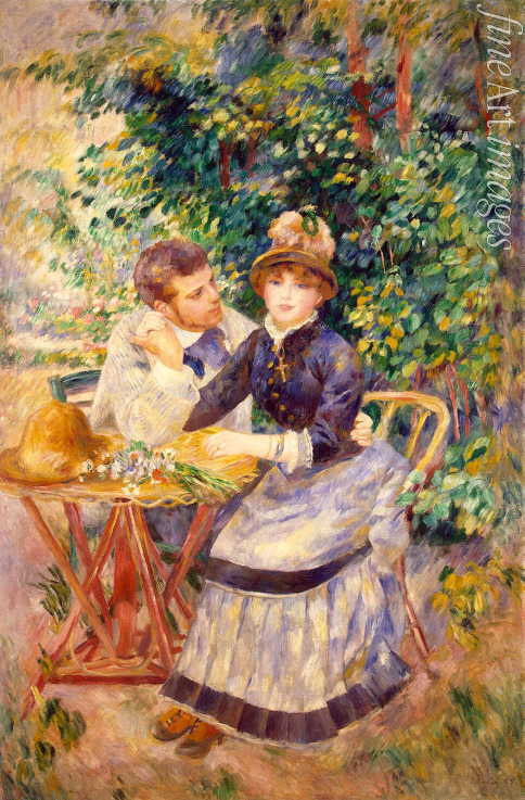 Keywords: Summer, Seasons, Poetry, Sun light, Trees, France, Conversation, Light, Colourfulness, Lady, Garden, Love, Lovers, Impression, At the Table, Love scene, Rendezvous, Amusing, Amorous, Love relationship, Loveplay, Impressionism, Impressionists, Love couple, Amorous couple