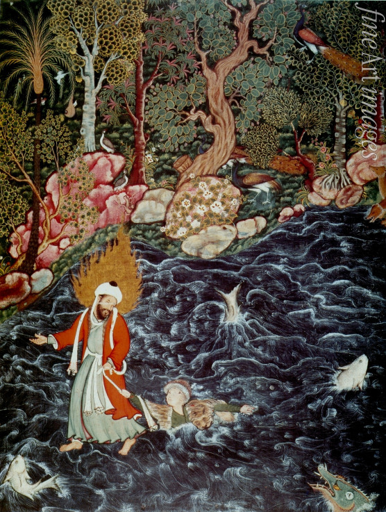 The prophet Elijah rescuing Prince Nur ad-Dahr (From the Hamzanama)