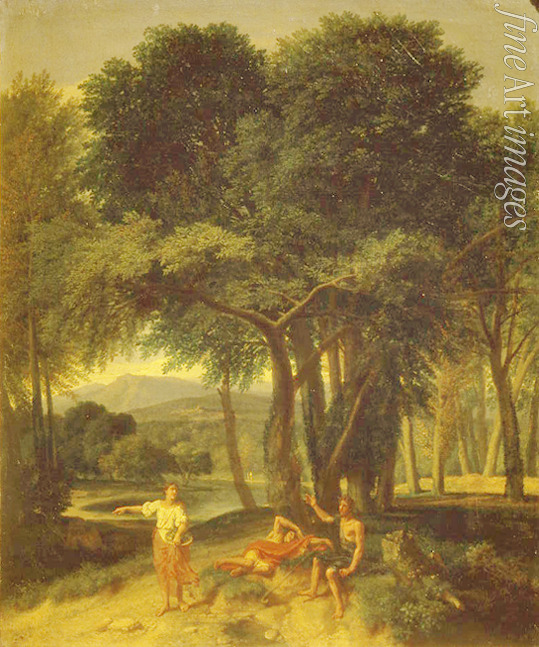 Keywords: Summer, Country side, Nature, Seasons, Poetry, Summer landscape, Trees, Valley, France, Lighting, River, Meadow, On the grass, Wood, Hill, Mount, Barock, Rest, Forest, Landscape, Figures, Romantic landscape, Rest in a forest, Resting