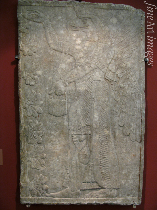 Assyrian Art - Bird-headed deity by the sacred tree. Relief from the palace of Ashurnasirpal II at Kalhu, Nimrud
