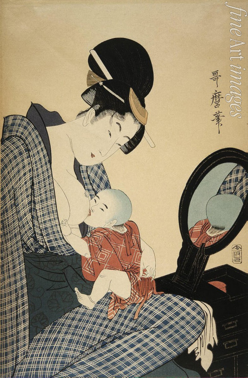 Keywords: Poetry, Luck, Tenderness, Motherhood, Motherly love, Mother and Child, Asian, Family life, Mother, Woodcut, Far East, Japan, Edo period, Japanese Art, Asia, Ukiyo-e, Maternity