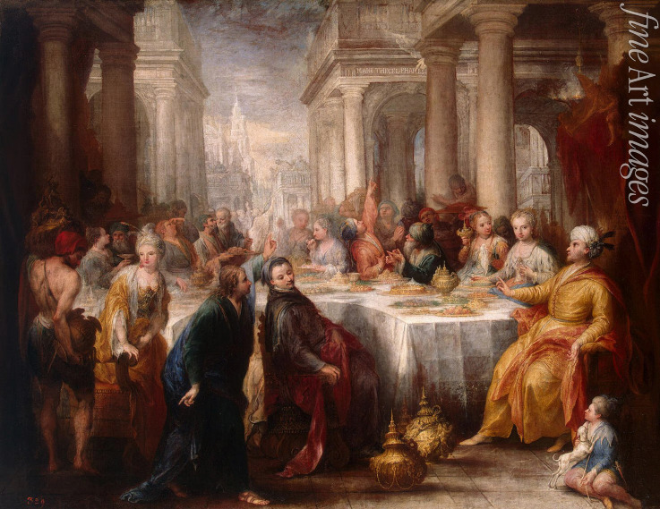 Keywords: Barock, Bible, Old Testament, Guests, Book of Daniel, Writing, The Feast of Belshazzar, Belshazzar, Babylon, King of Babylon, Royal Feast, Hebrew, Tyrann, Prophecy, Fall, Belshazzar's Feast, Babylonia