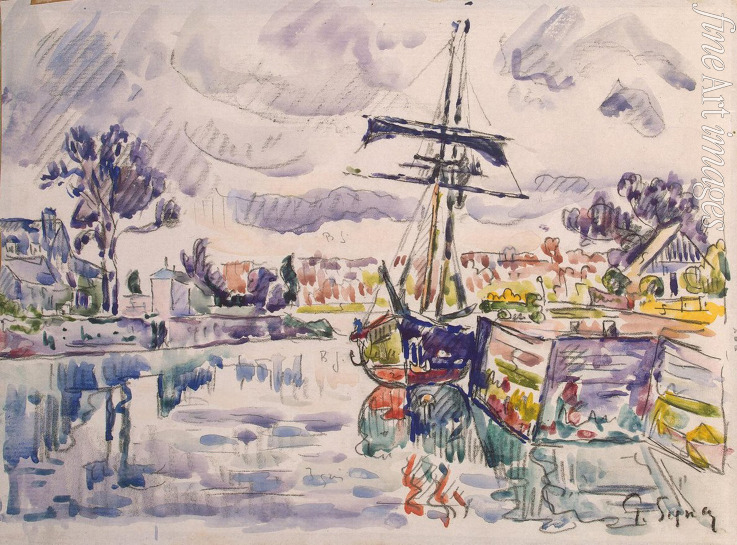 France, Sea, Sea landscape, Sail, Sailing boat, Yacht, Shore, Seashore, Port, Bay, Pointillism, Neoimpressionism, Divisionism, Impression, Boat, Ship, Fishermen, Water colours, Harbour, Brittany, Impressionism, Trawler, Impressionists, Yacht harbour, Otto Krebs, Bretagne