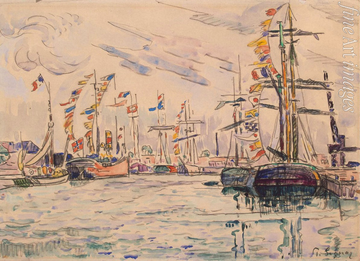 France, Sea, Sea landscape, Sail, Sailing boat, Yacht, Shore, Seashore, Port, Bay, Pointillism, Neoimpressionism, Divisionism, Impression, Boat, Ship, Fishermen, Water colours, Harbour, Brittany, Impressionism, Trawler, Impressionists, Yacht harbour, Otto Krebs, Saint-Malo, Bretagne