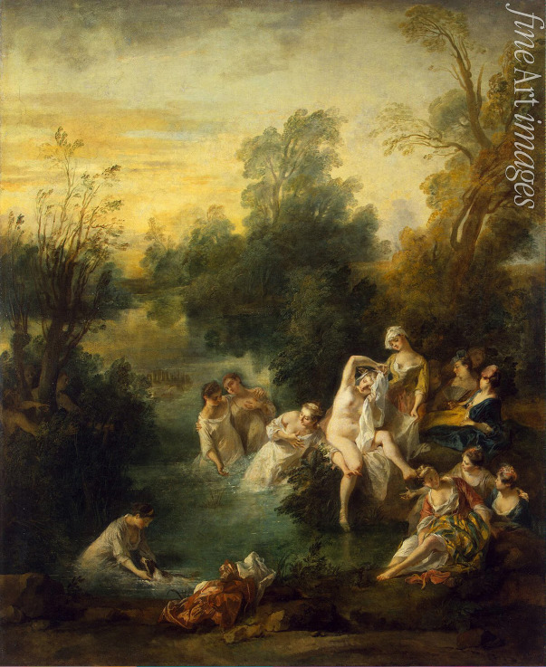Summer, Nature, Seasons, Poetry, Summer landscape, France, Nude, Nudity, Nude woman, Bathing, On the banks, River, Beauty, Ladies, Funny company, Pleasure, Bathers, At the water, Amusement, Company, Rococo, Nobility, Aristocracy, Entertainment, Gentlemen, Amusing, Amorous