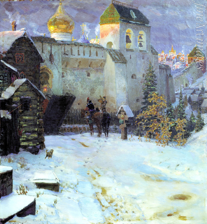 Keywords: Winter, Cityscape, Russian architecture, Town, Tradition, City, Genre scene, Folklore, Traditional, Architecture, Moscow, Russian History, Russian winter, History of Russia, Muscovy, Moscow principality, Grand Duchy of Moscow, Ancient Russia, Muscovite boyar, Knyaz, Russian folklore, Peredvizhniki, The Wanderers, The Itinerants