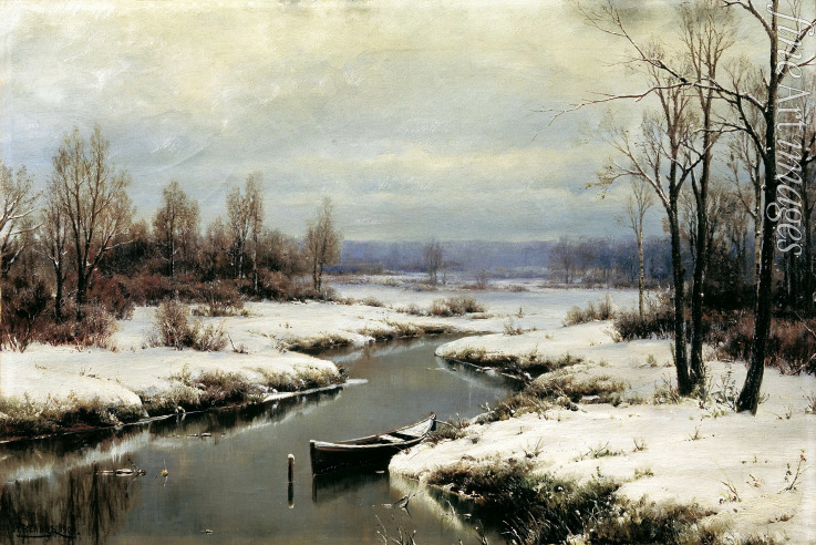Keywords: Winter, Winter landscape, Snow, Country side, Frost, Nature, Seasons, Trees, On the banks, River, Field, Russia, Country Landscape, Boat, Winter scene, Early winter