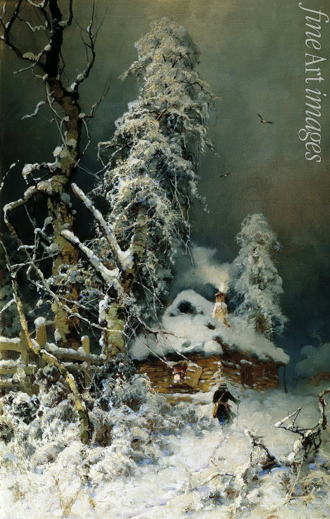 Winter landscape with a country house